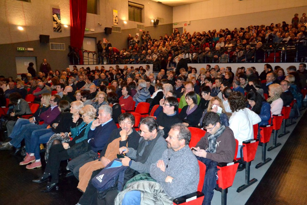Il pubblico che ha gremito in ogni ordine di posti il teatro comunale di Mandello.