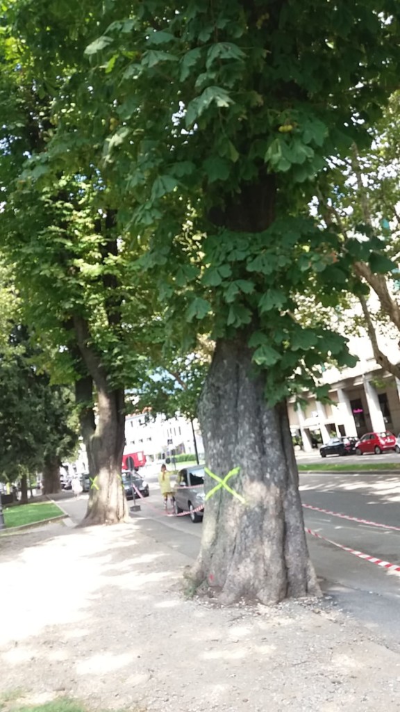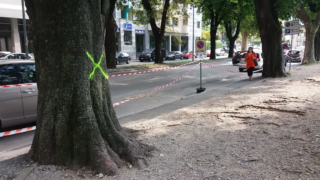 Gli alberi da abbattere sono già stati contrassegnati con una ‘X’ ben visibile sul loro fusto e sulla strada è già stato disposto il divieto di sosta per consentire le operazioni dell’azienda incaricata.