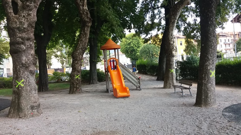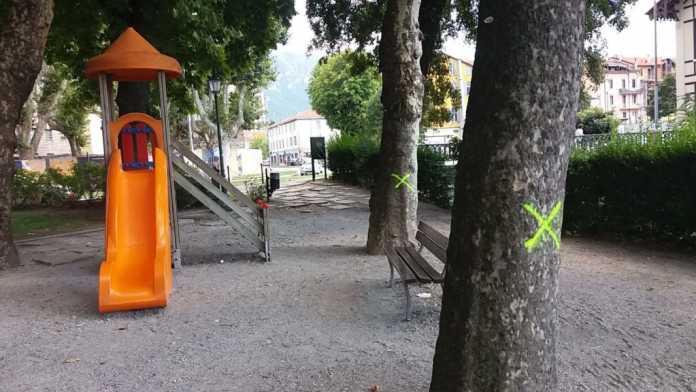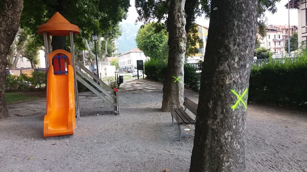 In particolare, saranno abbattuti i quattro platani del parco giochi che oggi fanno quadrato attorno allo scivolo per i bambini. L’agronomo, si legge nel documento del comune, ha rilevato nelle piante difetti anche gravi al fusto, al castello e alla branche primarie, uno di questi platani è anche “fortemente sbilanciato”, un altro “deforme per competizione”, per questo l’esperto ne consiglia l’abbattimento.