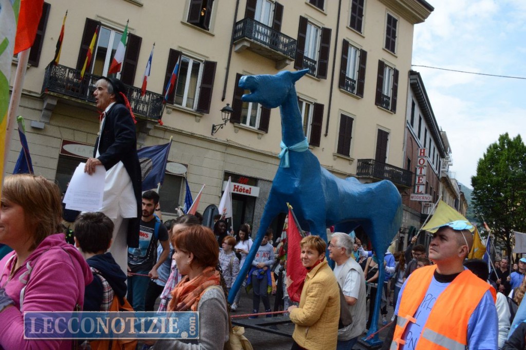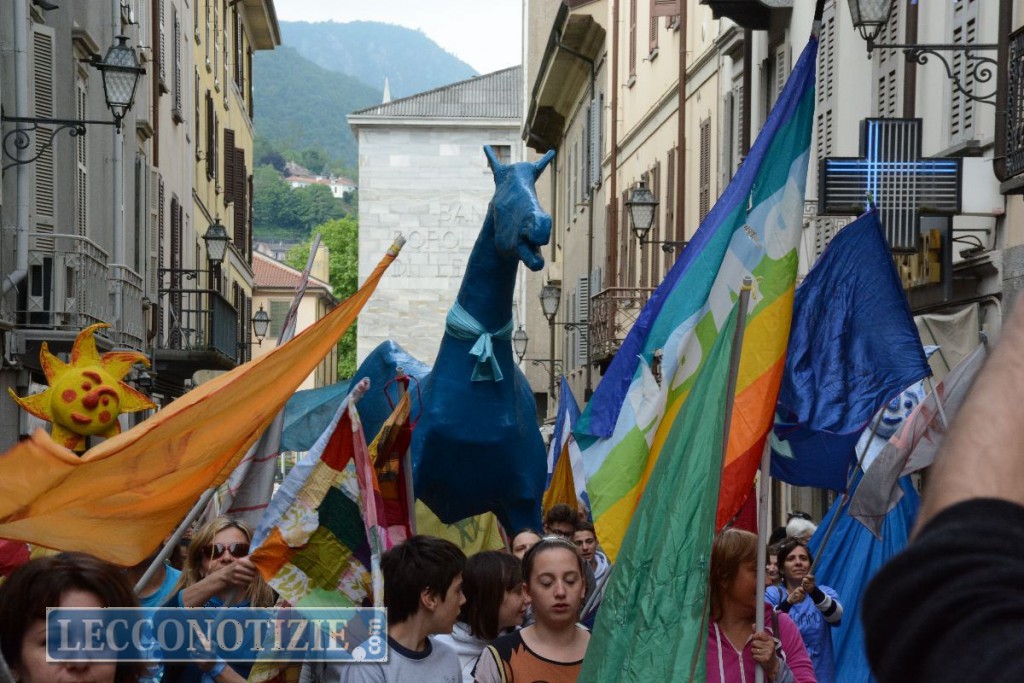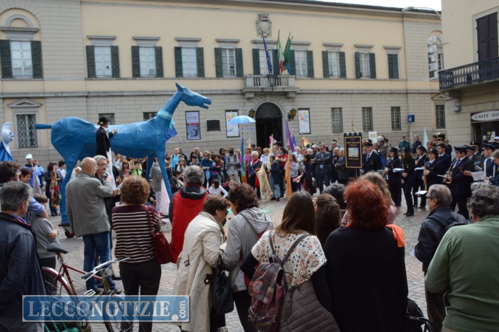 Ieri come oggi, Marco Cavallo, coi suoi quattro metri di altezza, ha svettato lungo le vie della città con al seguito gli studenti della media Stoppani, del Medardo Rosso, del Bertacchi e del Badoni, i ragazzi del comunità il Gabbiano e del Sesto Senso di Bellano e il Corpo Musicale Brivio di Rancio.