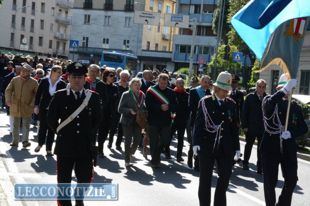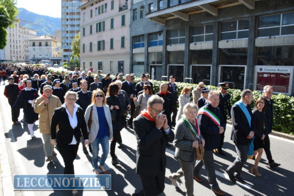 Le celebrazioni sono iniziate in mattinata con la messa al Santuario della Vittoria officiata da monsignor Franco Cecchin e allietata dai canti del Coro Grigna dell’associazione Alpini di Lecco, alla presenza delle autorità civili e militari. A margine del rito religioso, l’omaggio ai caduti della Grande Guerra nella cripta del santuario e poi il corteo, guidato dal Corpo Musicale “Alessandro Manzoni”,  che ha sfilato per le strade cittadine, percorrendo viale Costituzione e imboccando successivamente Piazza Garibaldi, risalendo via Cavour per raggiungere il monumento ai caduti in Largo Montenegro; qui la deposizione della corona di fiori a ricordare le vittime della lotta per la liberazione dal dominio nazi fascista.