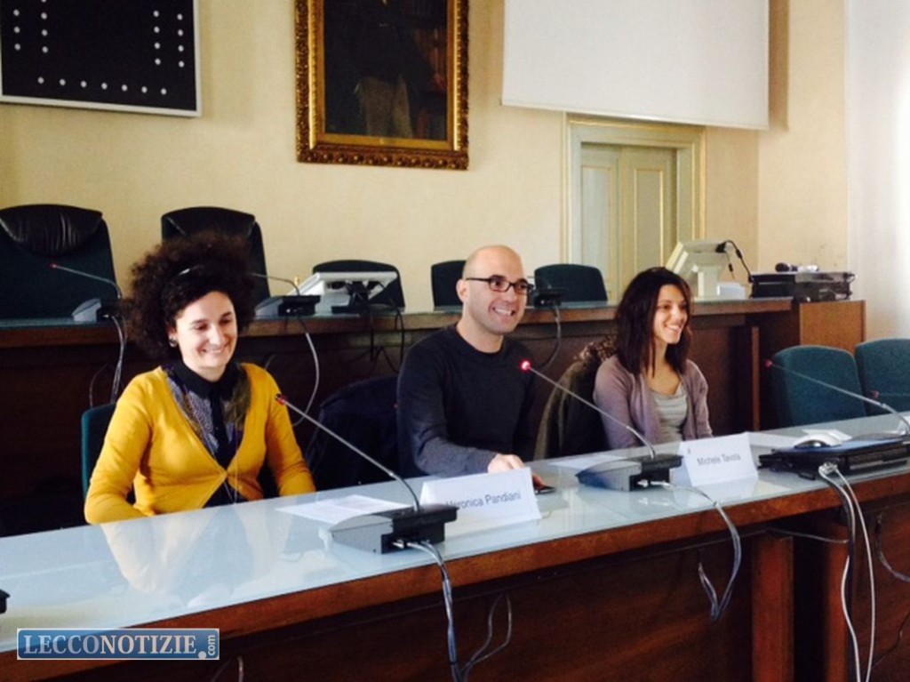 Da sinistra: Veronica Pandiani, curatrice del progetto Sguardi diversi, Michele Tavola, assessore alla cultura del Comune di Lecco e Antonella Cuppari, coordinatrice dei Servizi Artimedia