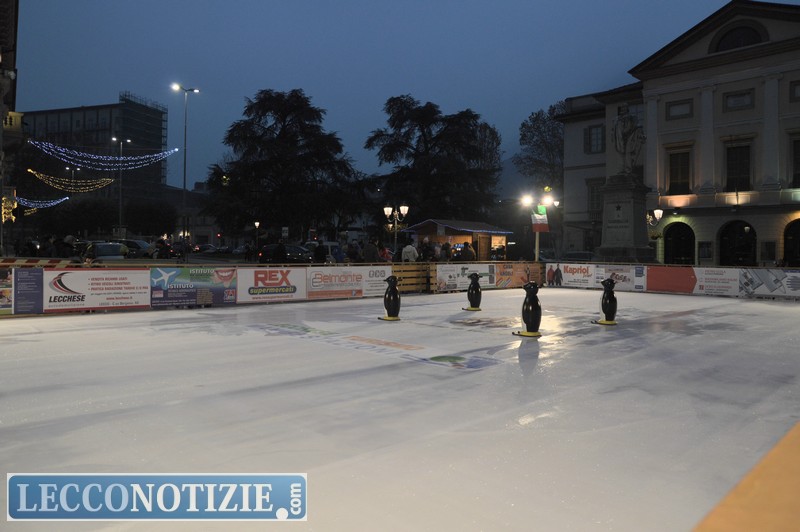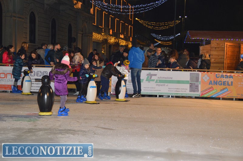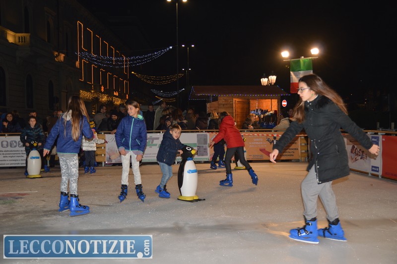 Alle 17 una folla gremita ha assistito all’inaugurazione della novità più attesa di questo Natale 2016: la grande pista di pattinaggio in Piazza Garibaldi, installata da Ltm (Lecco, turismo, manifestazioni) il cui ricavato sarà devoluto a Theleton.