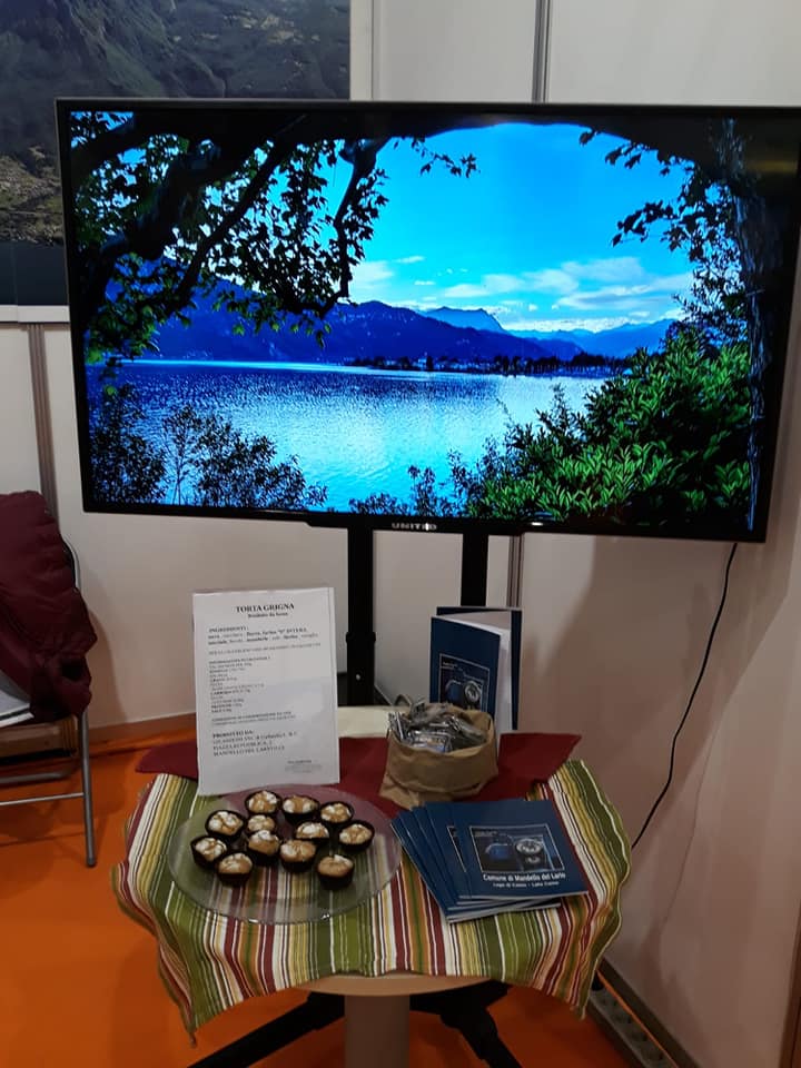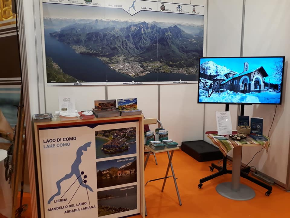 Uno stand rappresenta i tre comuni, con foto suggestive e materiale informativo da distribuire ai visitatori.