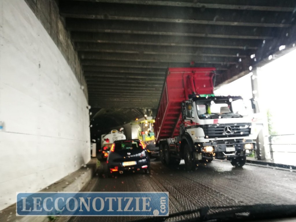 MANDELLO – Segnalate code in mattinata al confine tra Lierna e Mandello, in prossimità della frazione di Olcio: in corso i lavori di asfaltatura della strada provinciale, nel tratto della galleria Grumo. (foto di Luisella Aliprandi).