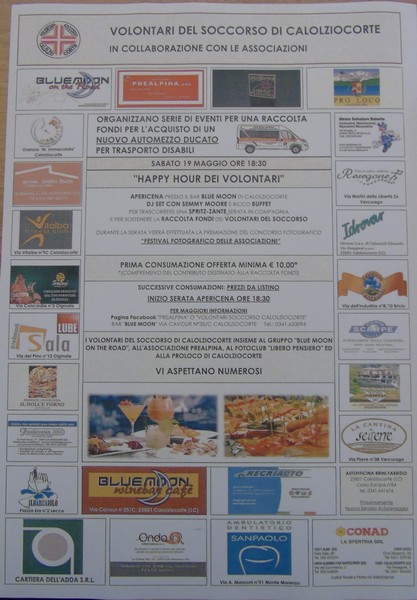 CALOLZIOCORTE – Tante iniziative nate dalla sinergia e da un gran lavoro di squadra messi in campo dai Volontari del soccorso di Calolziocorte e le associazioni BlueMoon on the road, Prealpina, Foto club libero Pensiero e la Pro Loco cittadina, lo scopo è nobile: promuovere una raccolta fondi per l’acquisto di un nuovo automezzo ducato adibito al trasporto disabili da utilizzare sull’intero territorio.
