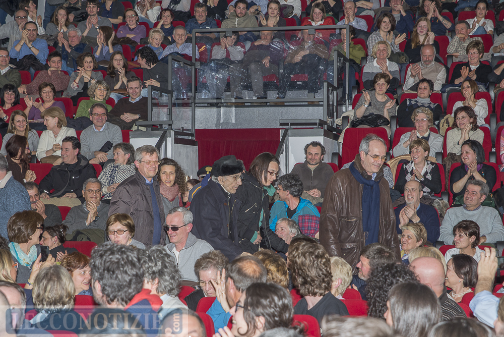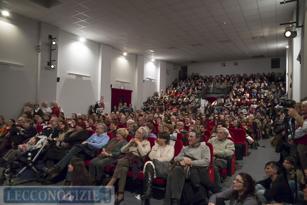 BELLANO – Mezz’ora di ritardo per un contrattempo, mentre il cine teatro di Bellano strabordava con gente stipata ovunque, molta rimasta fuori con i Carabinieri a presidiare l’ingresso per il troppo pieno.