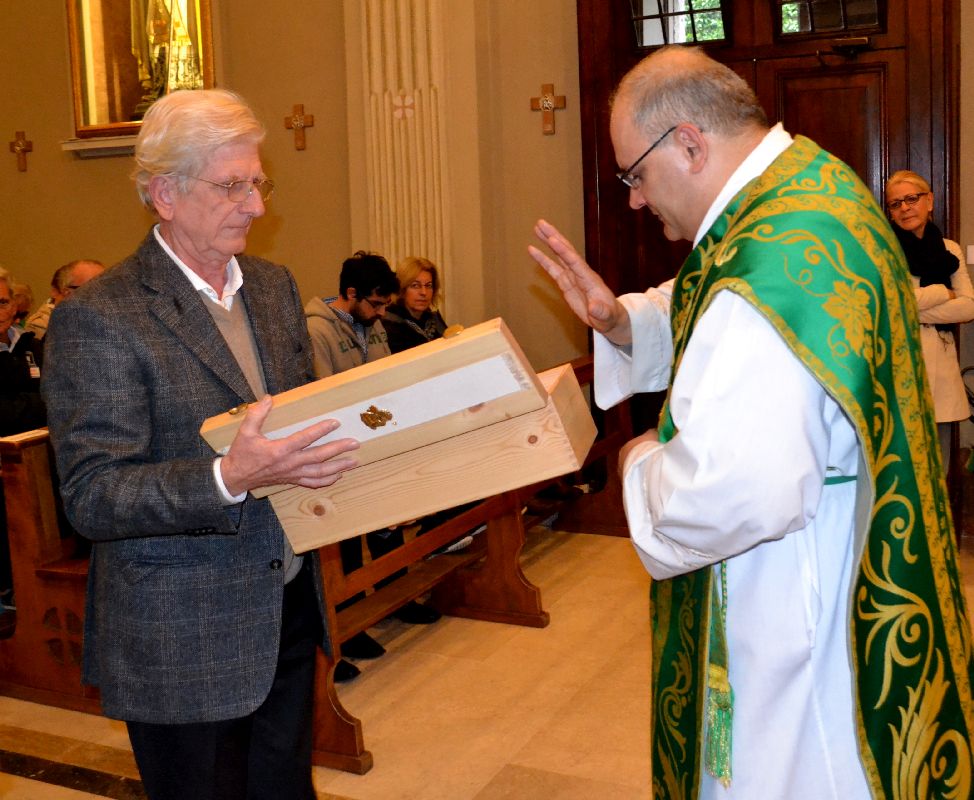 All’offertorio sono stati portati all’altare il pane e il vino (“diventino per ciascuno di noi compagni di viaggio per sostenerci nel cammino della vita”), un cero simbolo della fede, i fiori segno della bellezza e della varietà del Creato e la pisside “tanto amata dal nostro don Massimo”. “La nostra comunità parrocchiale – è stato detto – è felice di donargliela come ricordo e come nutrimento condiviso con i nostri fratelli nella fede di Moltrasio”.