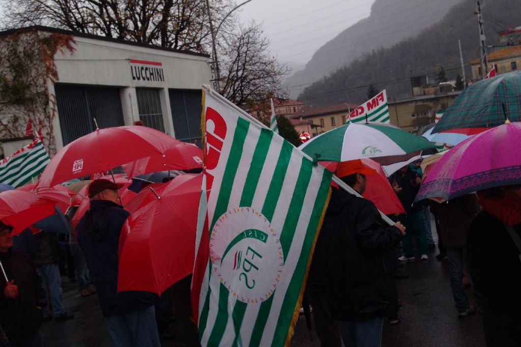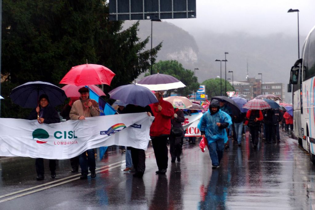 Le avverse condizioni meteo non hanno scoraggiato i manifestanti che dalle 9.30 circa hanno sfilato per le vie del capoluogo partendo dalla Lucchini, sede lecchese di un’azienda simbolo della crisi economica che sta mordendo il Paese.