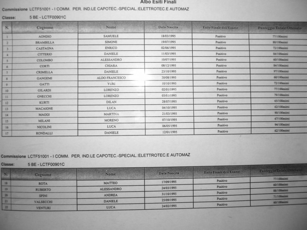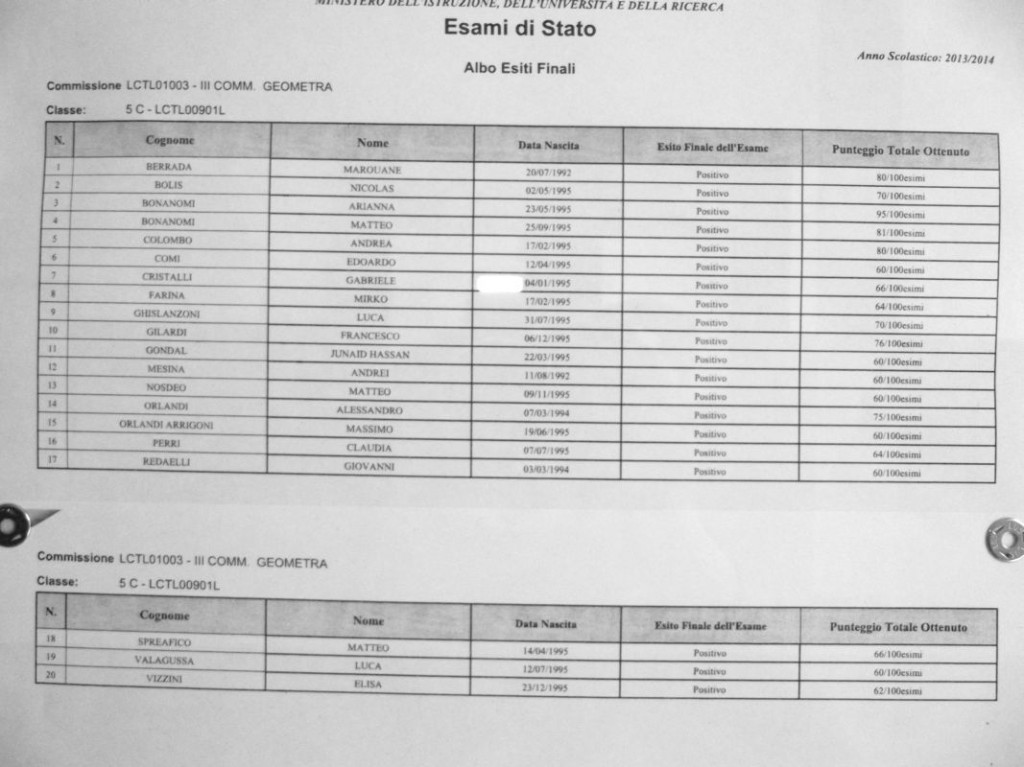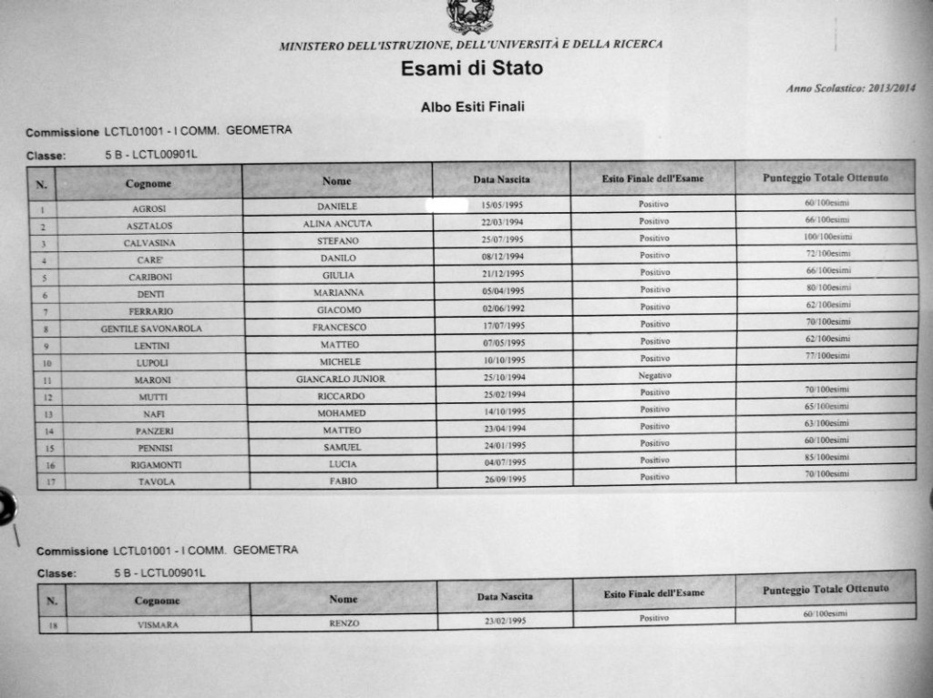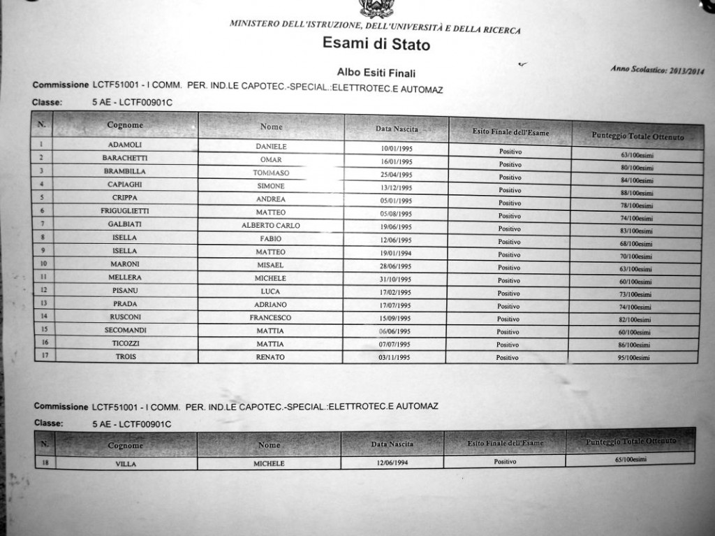 Gli esiti registrano un solo bocciato e soltanto un 100/100, quello di Giorgia Maestrini della classe 5B sperimentale scientifico.