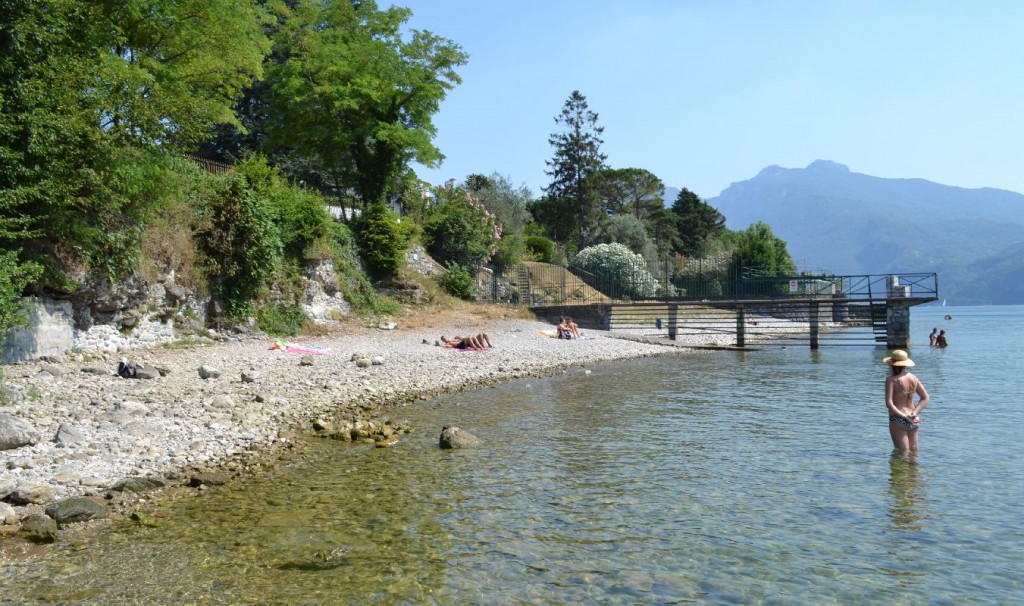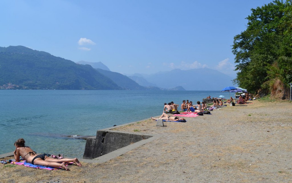SPAZIO – L’area destinata ai bagnanti non è particolarmente ampia, ma comunque questo spazio – cui si accede scendendo da una scaletta appunto in fondo a via Lungolario, proprio dove finisce la strada asfaltata – può accogliere un buon numero di persone.