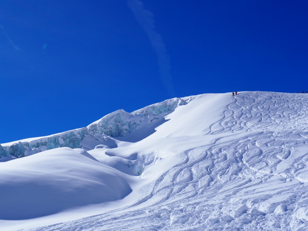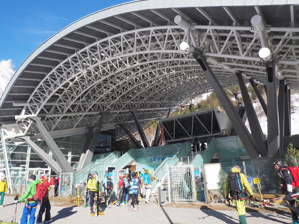 La sveglia proibitiva, molto prima dell’alba, non poteva che essere ripagata da una giornata straordinaria per il gruppo di sciatori, che giunti a Courmayeur hanno potuto ammirare da subito il Monte Bianco in tutta la sua bellezza.
