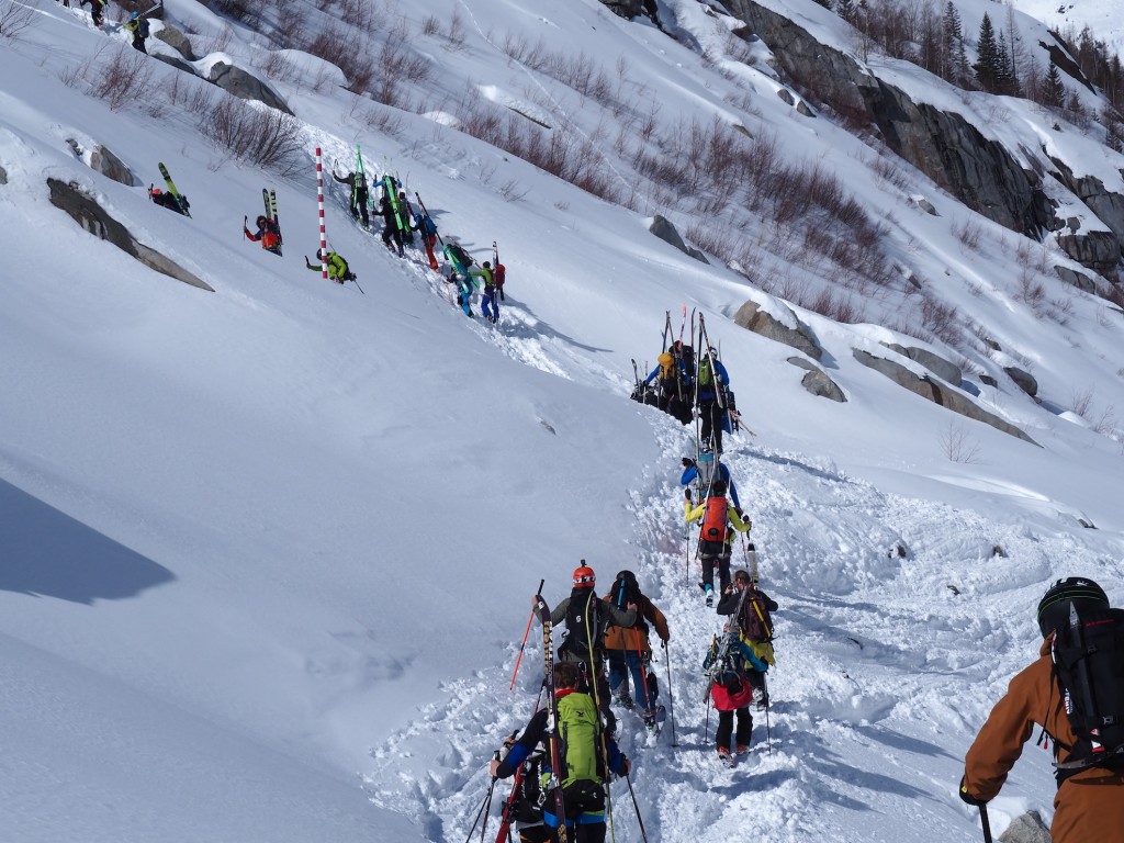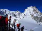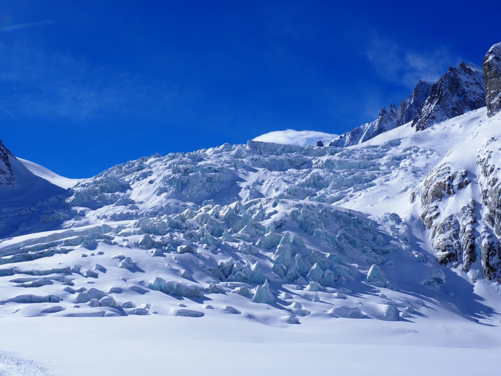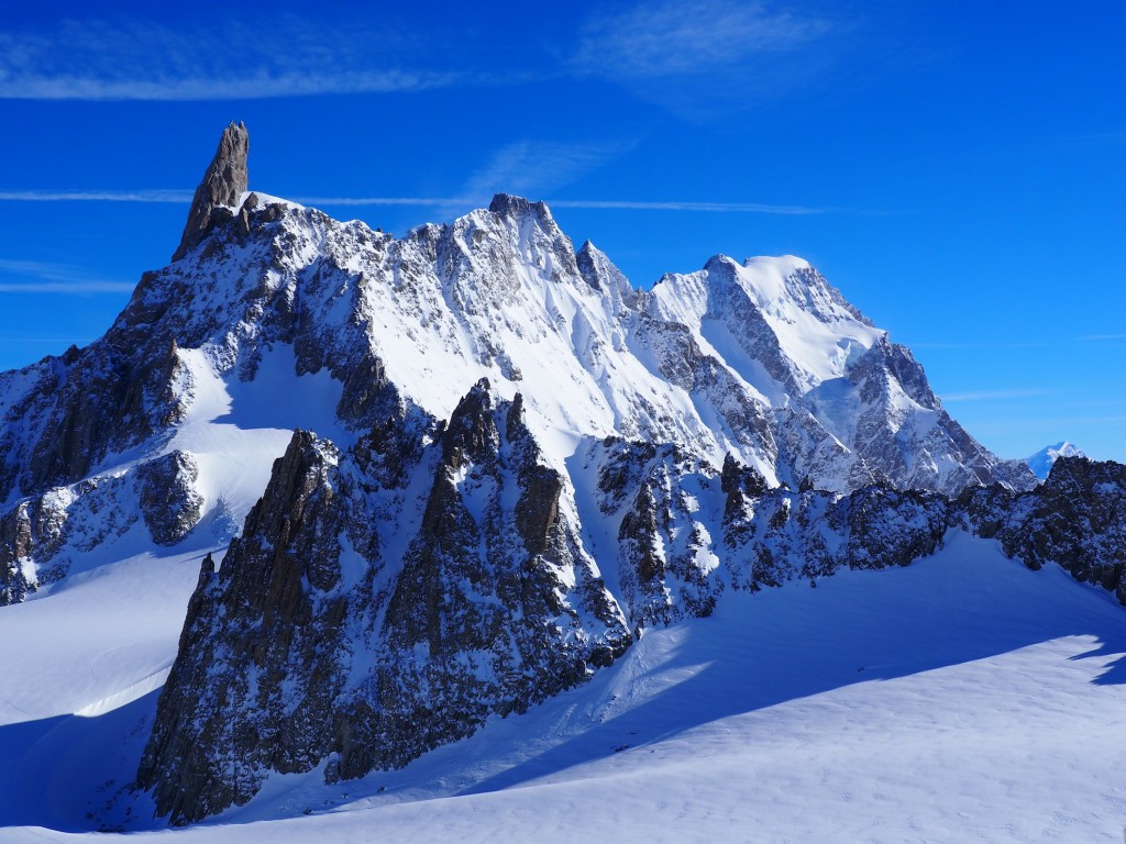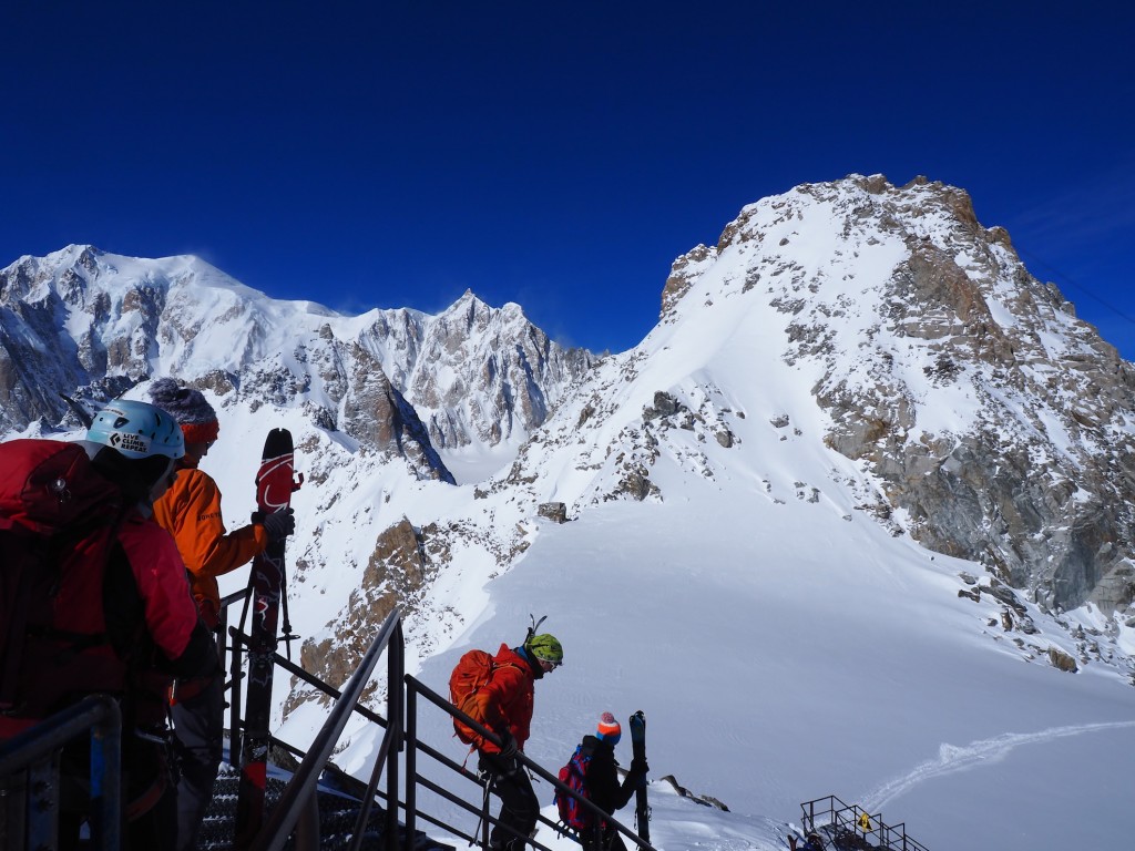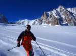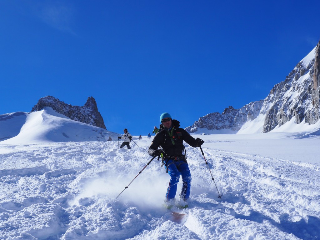 Il percorso di discesa della traversata parte da Punta Helbronner (3462 m) e arriva a Chamonix (1037 m): un tracciato di 24 km che si sviluppa nel cuore del massiccio del Monte Bianco lungo il ghiacciaio del Gigante, attraverso la Mer de Glace e, quindi, la Valle di Chamonix.