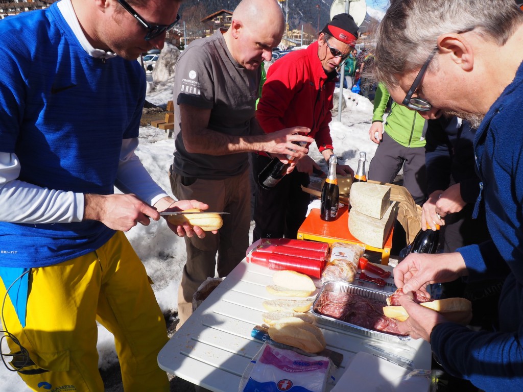Durante la traversata c’è stato anche il tempo di sostare per un veloce spuntino, presso la spettacolare “salle a manger”. Il brindisi vero e proprio invece è avvenuto a Chamonix a fine escursione, grazie agli organizzatori della gita che come ogni anno hanno portato da Valmadrera pane, salame, formaggi, buon vino e dolci. Una degna conclusione di giornata!