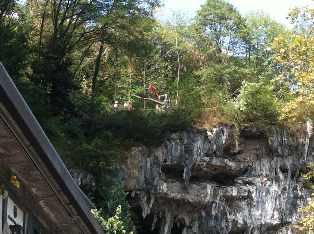 Un intervento spettacolare che sta facendo incuriosire numerosi laorchesi e non solo tutti con il naso all’in sù per osservare i treeclimber (così vengono chiamati i giardinieri che potano e tagliano alberi di alto fusto) al lavoro, dotati anche di una piccola ruspa giunta fin lassù dopo essersi fatta strada tra prati e boschi partendo dalla località Crogno, passando per la località La Cua e giungendo sopra la così detta Corna di Mort (corna dei morti) com’è chiamata dai laorchesi la grande roccia carsica che fa da cornice al cimitero di Laorca. Corna caratterizzata da splendide grotte e innumerevoli stallattiti che rendono il cimitero di Laorca tra i più spettacolari d’Europa e annoverato nella Ruote Europea dei cimiteri Monumentali (vedi articolo)