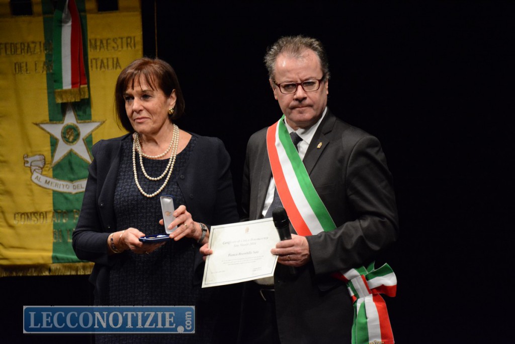LECCO – Una storica figura del mondo sportivo e del volontariato, un’associazione umanitaria e un’insegnante fondatrice di una delle scuole cattoliche più importanti della città: Giancarlo Tonelli, ‘Amici di Lorenzo’ e Bianca Brambilla Sala, a loro il Comune di Lecco ha consegnato domenica la civica benemerenza in occasione della festa di San Nicolò, patrono del capoluogo manzoniano.