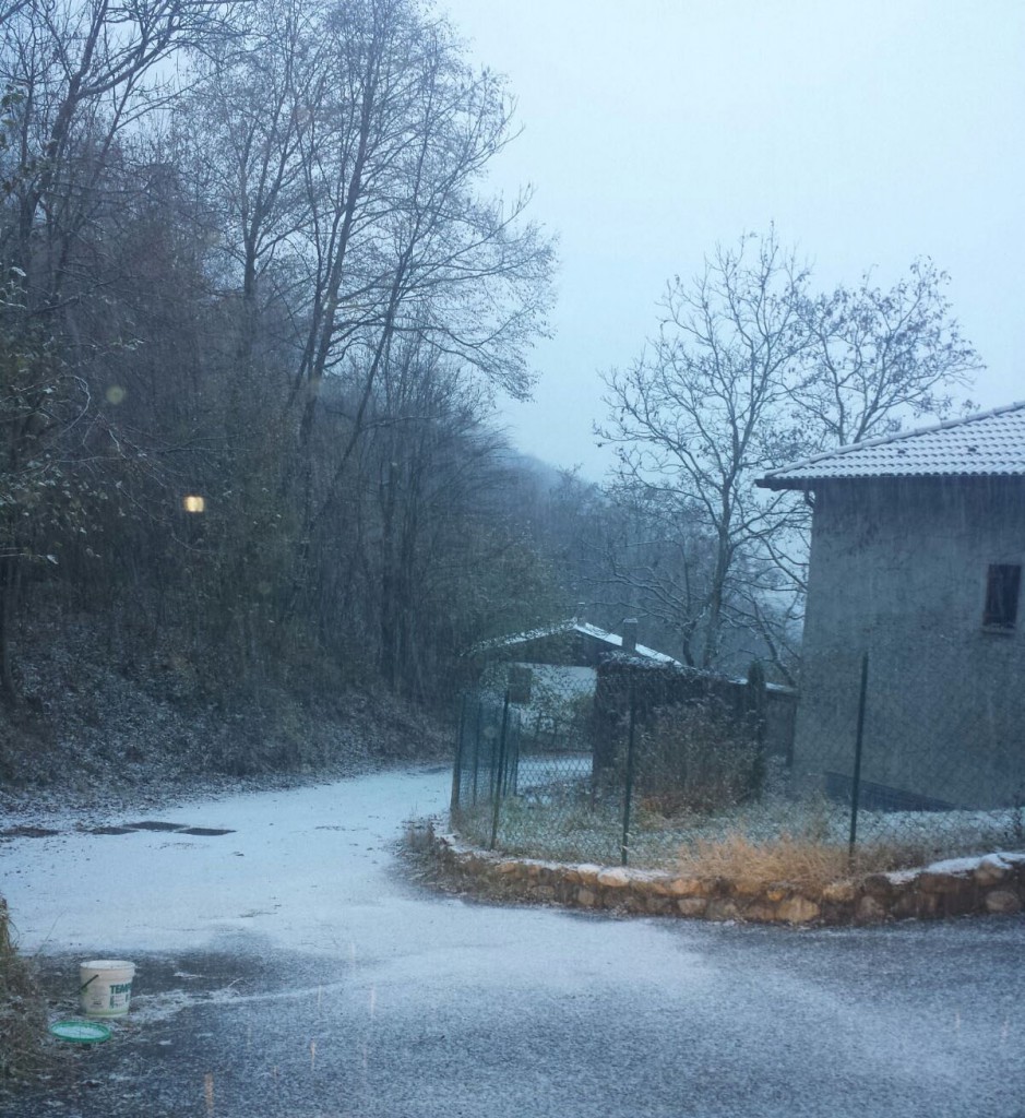 Neve sulle cime ed una spruzzata di bianco anche su alcune strade, come è successo a Maggio di Cremeno (vedi foto), qualche fiocco anche a Casargo e nella parte alta di Vendrogno.