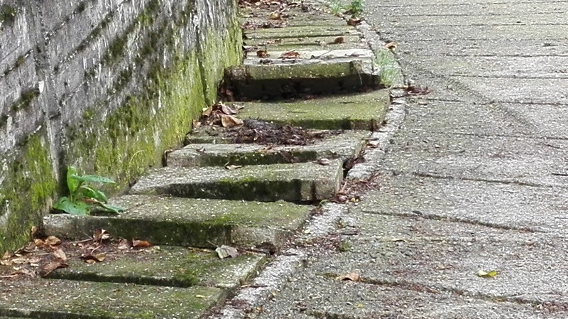 Nelle fotografie si possono vedere i tombini del canale di scolo delle acque sollevati dai detriti e il materiale recuperato dalla pulizia della bordura.