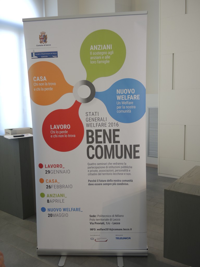 La parola d’ordine, ha ricordato l’assessore, è stare insieme: “Insieme pensare ai problemi e insieme dare risposte. Da soli oggi non si va da nessuna parte”. Gli Stati Generali del Welfare 2016 nascono attraverso un ampio coinvolgimento del territorio e i quattro seminari previsti vedranno la partecipazione di istituzioni pubbliche e private, associazioni, personalità e cittadini del territorio lecchese (e non solo). “Il futuro della città deve essere sempre più condiviso, la tradizione del nostro territorio ha dimostrato di saper preservare i servizi sociali dall’affanno e dalla crisi di questi ultimi anni. I problemi ci sono e sono notevoli ma è ora il momento di unire le forze, sedersi al tavolo e discutere di cose vecchie e nuove, di dare risposte concrete al territorio sempre più ‘strozzato’ dalla fragilità sociale”.