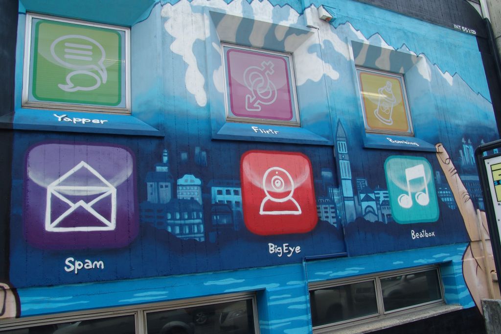 L’altro bando, finalizzato alla riflessione sui nuovi centri di aggregazione e di socializzazione, è stato rappresentata nel bozzetto dell’artista Sbafe: un tablet nel quale, accanto alle consuete applicazioni, compaiono icone personalizzate quali la bomboletta spray.