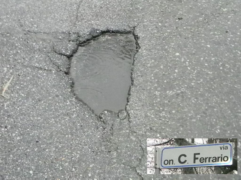 “Non si dica che è colpa della pioggia e del maltempo – ha commentato un signore che stava transitando vedendoci scattare foto – E’ da anni che non mettono mano al manto stradale in modo radicale e quando lo fanno intervengono con rattoppi che sono ridicoli. Stendono un velo di asfalto che puntualmente si sgretola dopo pochi giorni. La legge dice espressamente che i lavori devono essere fatti a regola d’arte, qui a me non sembra ci sia né la regola e nemmeno l’arte”, ha chiosato con un pizzico di rabbia.