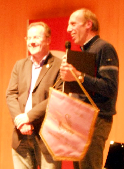 Sul palco è salito anche il Sindaco di Lecco Virginio Brivio che ha consegnato a Don Agostino Frasson il gagliardetto del giro di Lombardia ricevuto dal Municipio lo scorso ottobre. “Ritengo sia giusto donare questo stemma all’Istituto Don Guanella dato il legame che ha con il modo del ciclismo.” Ha spiegato il sindaco che ha omaggiato il direttore anche con una copia dei Promessi Sposi a fumetti.