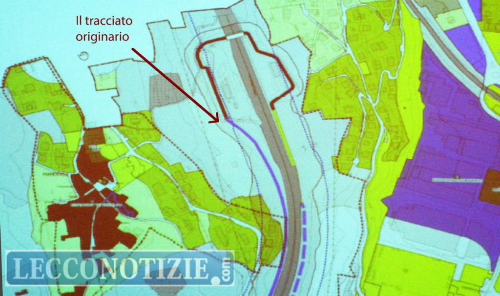 Nella foto il precedente e l’attuale tracciato segnalati nel PGT: