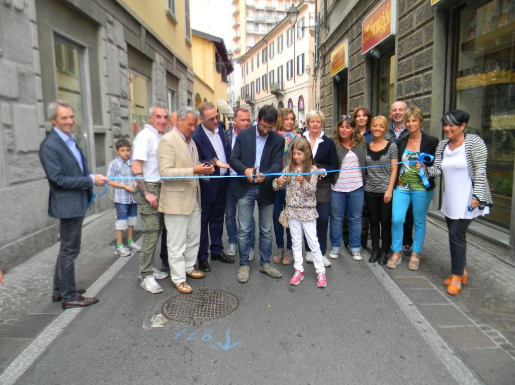 LECCO – Tradizionale taglio del nastro per l’associazione dei commercianti di via Carlo Cattaneo con il quale è stata ufficializzata la pedonalizzazone della via, dall’intersezione con viale Dante a quella con via Fratelli Cairoli. Alle 16 di sabato pomeriggio, il presidente dell’associazione Massimiliano Cioffi, alla presenza del direttore di Confcommercio Lecco Alberto Riva, del presidente della Zona Lecco Alberto Negrini e del vice-sindaco Vittorio Campione ha così ufficializzato la pedonalizzazione.