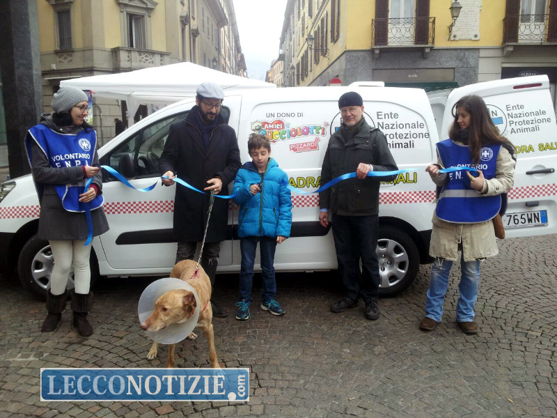 LECCO – Taglio del nastro, sabato, per l’ambulanza dell’Enpa di Lecco, donata dalla Pizzardi Editore a 35 sedi provinciali dell’ente animalista grazie al ricavato della raccolta di figurine “Amici Cucciolotti”.