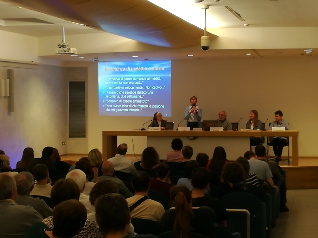 Durante la serata è arrivata anche la testimonianza, molto toccante, di una persona affetta da afasia.