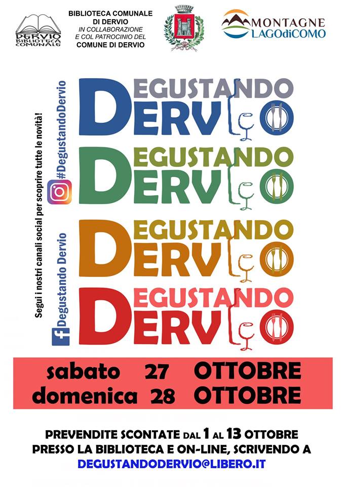 DERVIO – Dopo il successo degli scorsi anni, l’evento enogastronomico e culturale “Degustando Dervio” propone la sua quinta edizione, curata da Biblioteca e Amministrazione Comunale con il contributo del network Montagne Lago di Como e di diversi gruppi e associazioni, nell’ultimo week end di ottobre (sabato 27 dalle 18 alle 24 e domenica 28 dalle 11 alle 17).