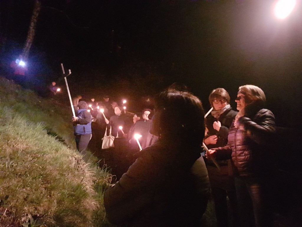 TORRE DE BUSI – Una via Crucis suggestiva, illuminata dalle fiaccole, quella che si è svolta venerdì sera a Sogno, organizzata dalle parrocchie di Torre de Busi.