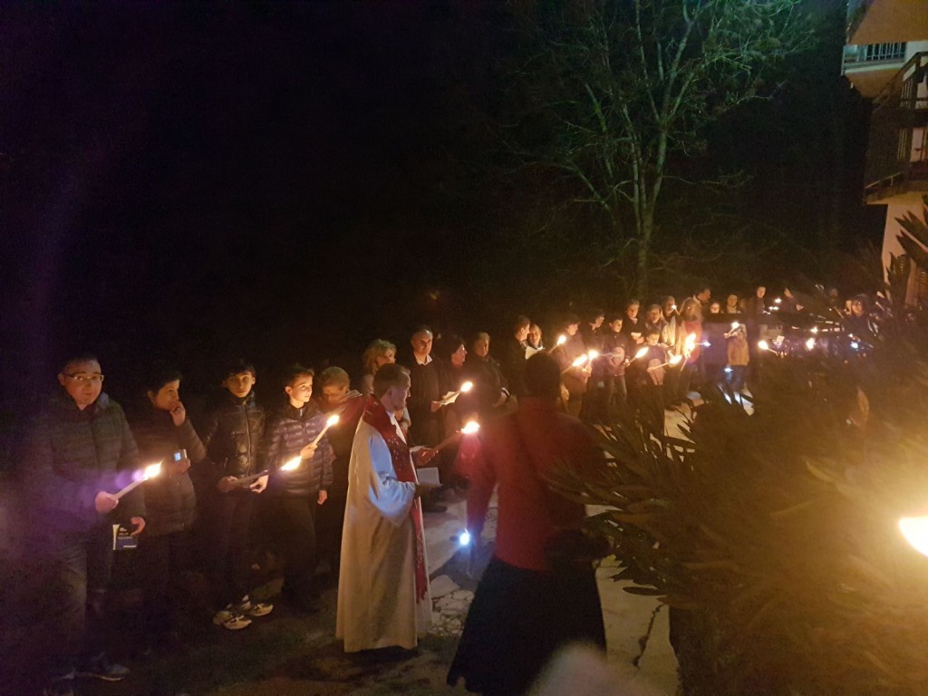 La via crucis ha preso il via dalla fontana del centenario della prima guerra mondiale e dopo un suggestivo e faticoso percorso tra le mulattiere di Sogno sotto la guida del vicario don Roberto Trussardi e di don Roberto Grazioli di Cisano, ha concluso il suo viaggio in chiesa parrocchiale.