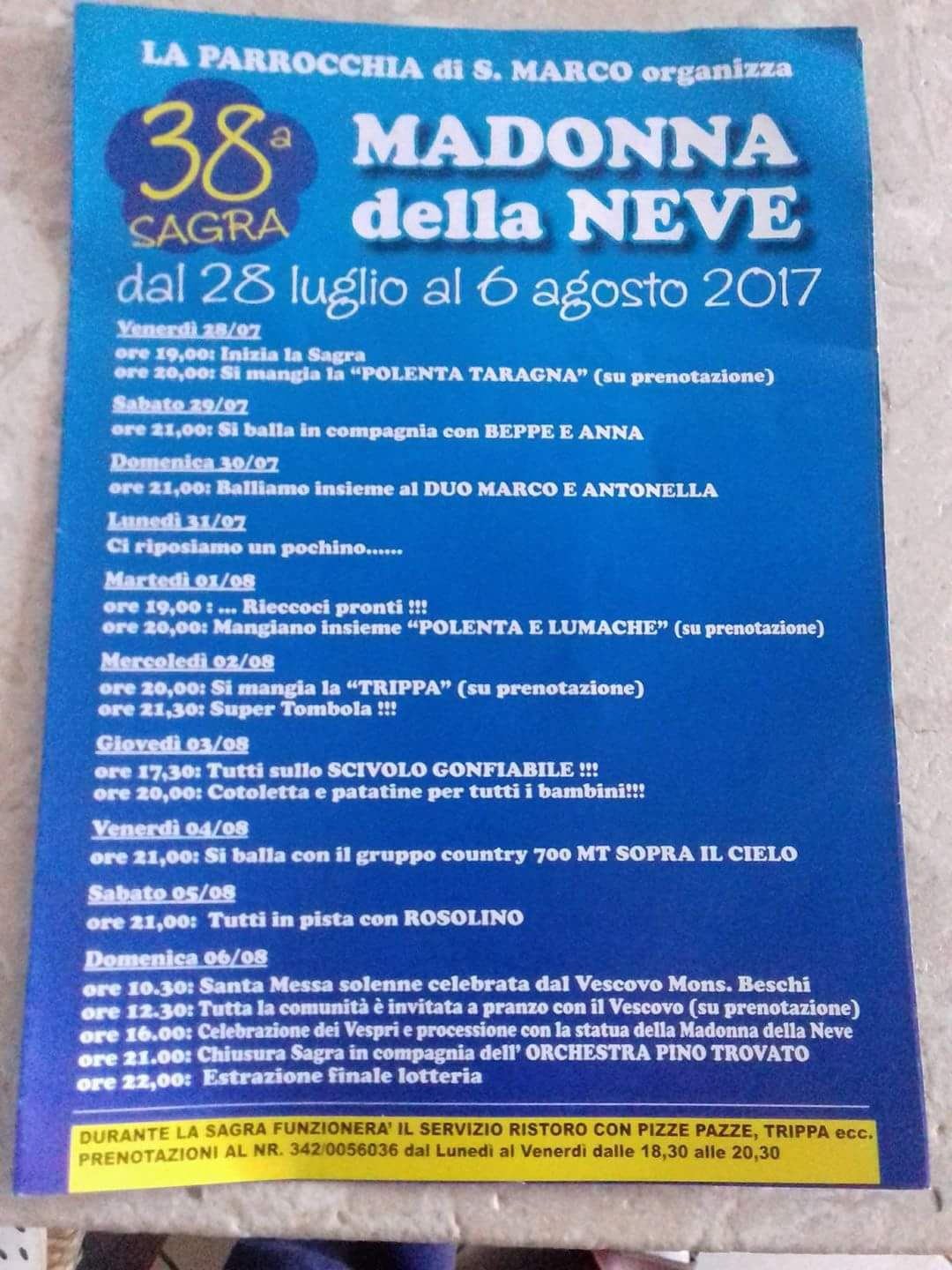 La parrocchia di San Marco ha organizzato diverse iniziative per la “38° sagra Madonna della Neve” (Qui per il programma completo):