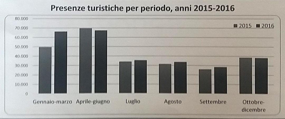 Il numero di notti trascorse nella nostra provincia, in questi primi mesi dell’anno, scende a 2 giorni (contro i 2,2 dei primi tre mesi del 2016).