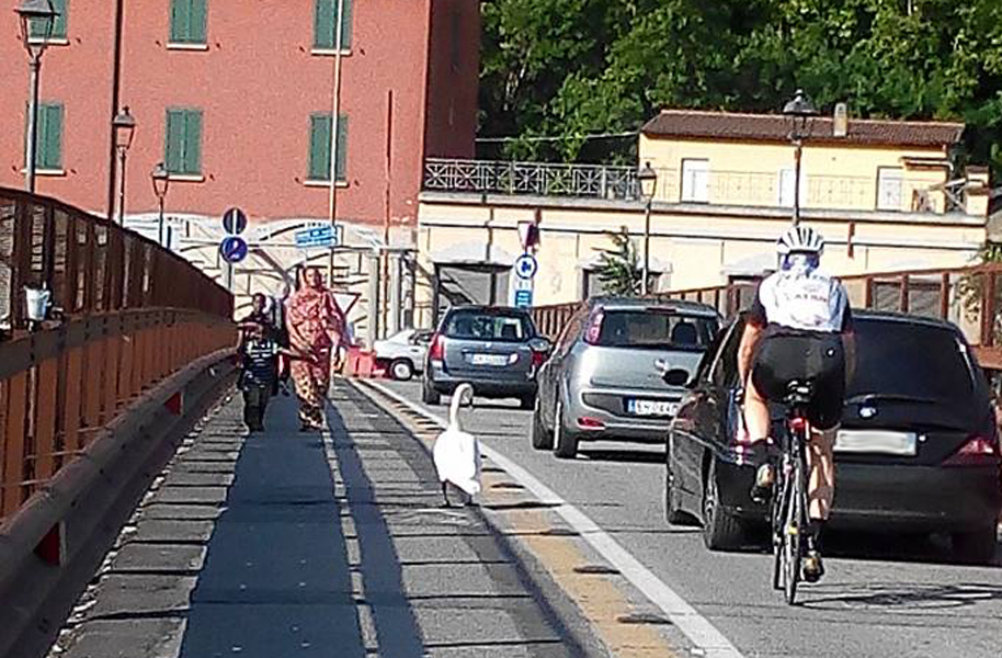 LECCO – Quando l’amministrazione comunale aveva immaginato una passerella pedonale sul Ponte Vecchio l’aveva pensata per pedoni e ciclisti, eppure mercoledì mattina è tornata utile anche a un cigno che ha deciso di farsi una passeggiata sulla struttura sull’Adda, che collega Lecco a Malgrate.