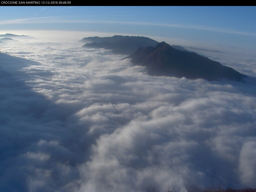 Un “mare” di nuvole, nelle immagini dalla webcam del S. Martino