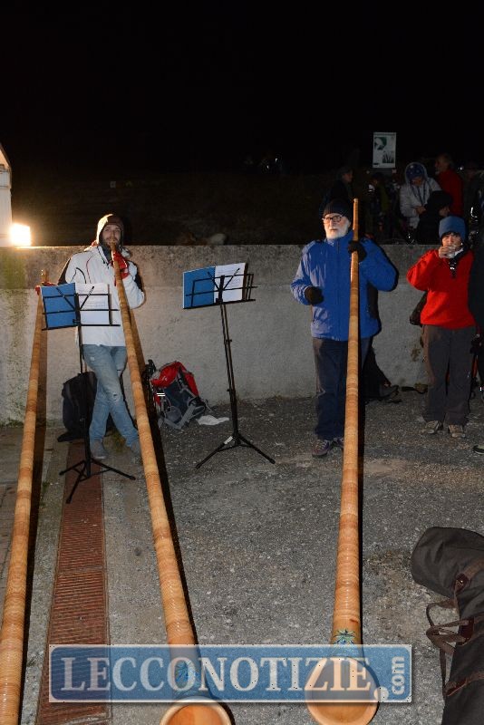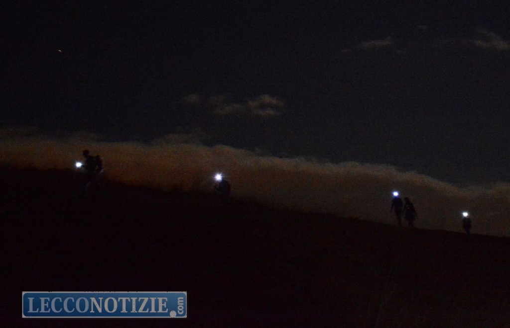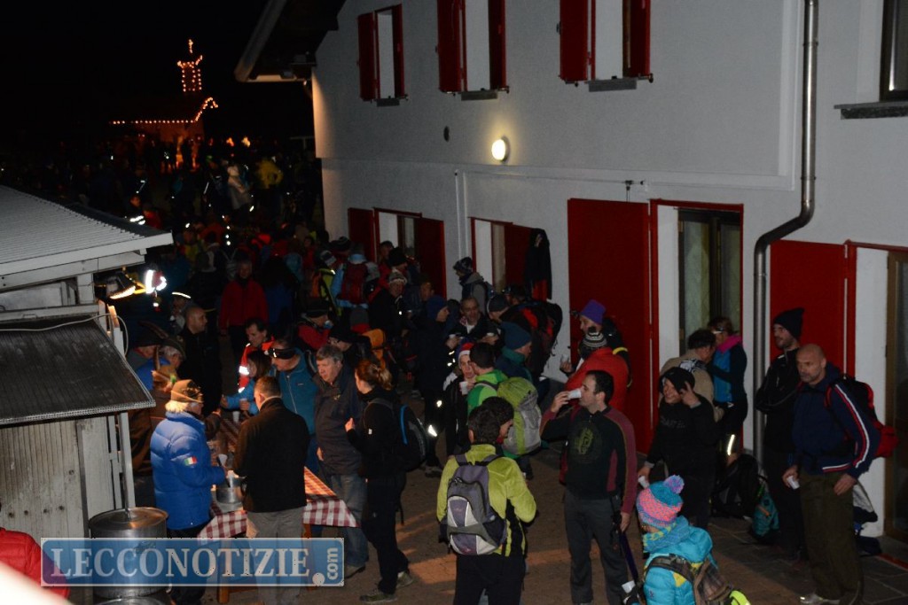 Muniti di torce e frontalini (le fiaccole quest’anno sono state bandite praticamente ovunque vista la mancanza di neve e per il pericolo di incendi boschivi) gli escursionisti hanno raggiunto la vetta in serata partendo da quattro diversi punti, sia dal versante lecchese che comasco: Terzo Alpe, Civate, Suello ad Eupilio, tutti diretti al rifugio Marisa Consigliere all’esterno del quale gli alpini hanno distribuito thè e vin brulè.
