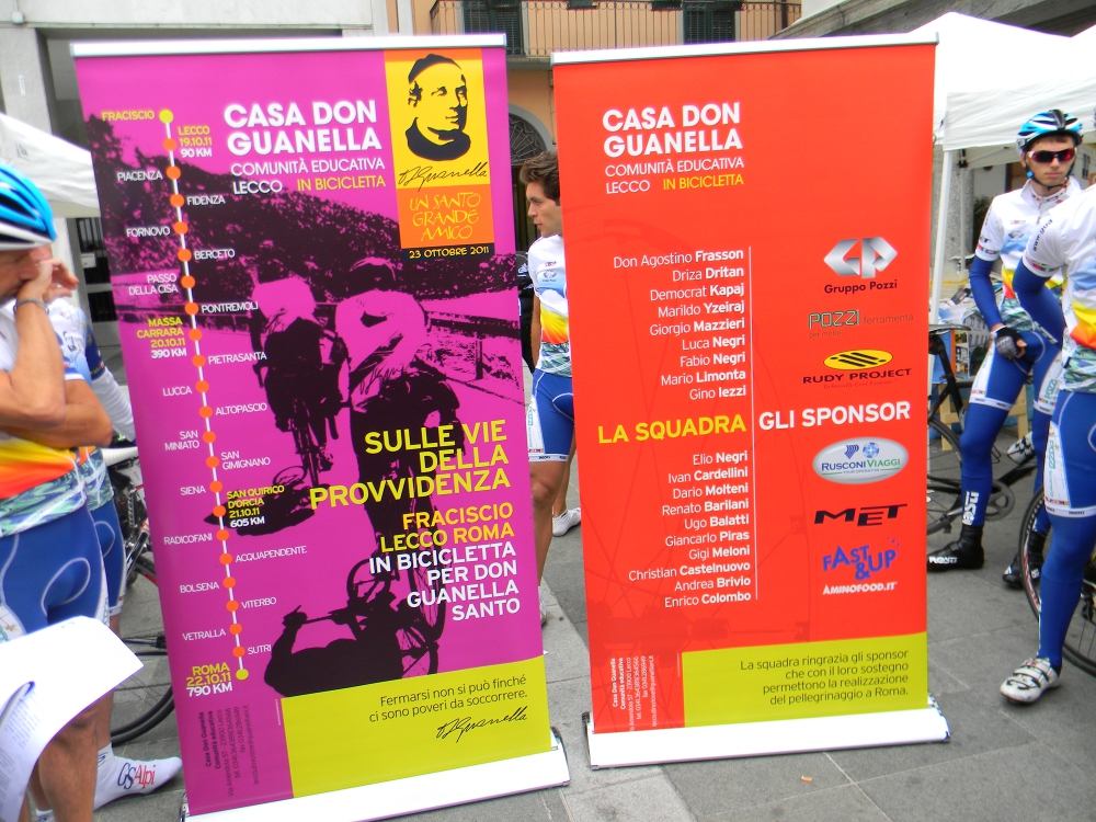 “Abbiamo organizzato questo pellegrinaggio per diversi motivi – ha spiegato oggi don Agostino Frasson, presente a Lecco con uno stand del Don Guanella in occasione dell’arrivo de Il Lombardia – Innanzitutto seguendo una passione che da qualche anno condivido con alcuni ragazzi ospiti della comunità, e poi perché ci è sembrato un modo per accompagnare metaforicamente il viaggio di Don Guanella dalla sua città natale a Roma. Non ultimo, il ciclismo è un perfetto esempio di quell’esperienza di condivisione che cerchiamo di vivere quotidianamente insieme ai nostri ragazzi”.