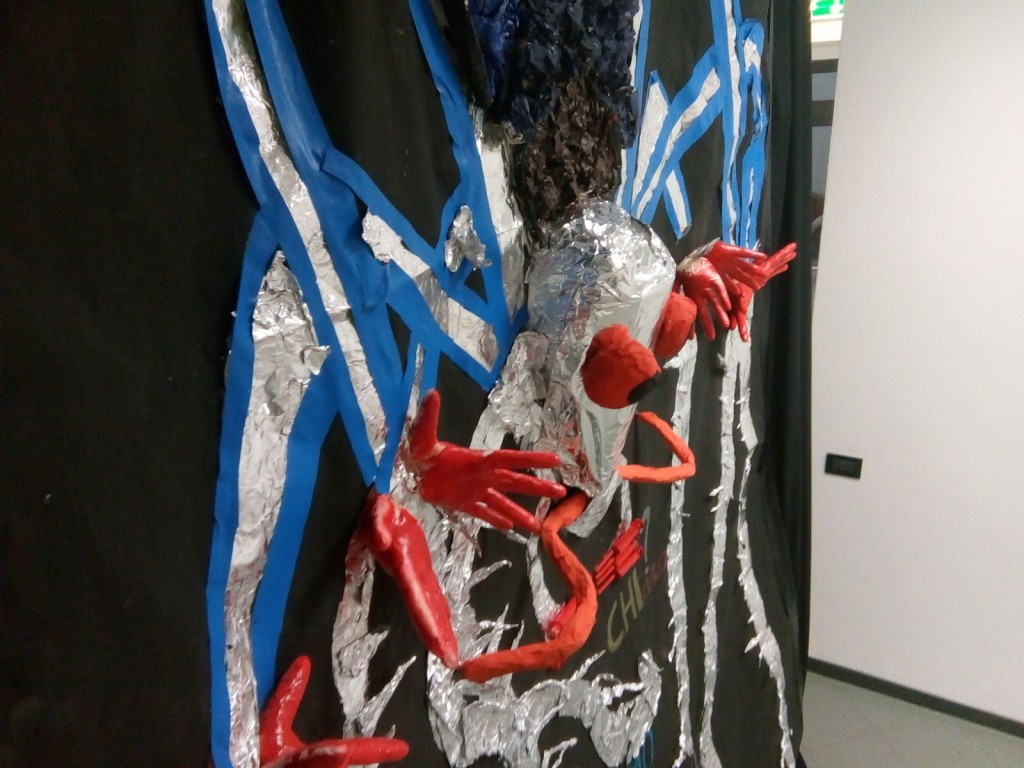 Si tratta di un ragno a sette zampe di nome Mocanacolechi, chiamato così unendo le iniziali dei nomi degli artisti, già esposto nella sede dell’associazione in via Ugo Foscolo.