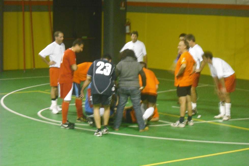 infortunio di gioco (vedi foto a destra) a un calciatore del 118 (ma era comunque in buone mani). Di spicco almeno tre individualità, che hanno offerto al pubblico e anche ai compagni di gioco numeri di alta scuola tra veroniche, doppi passi, finte e passaggi.