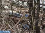 Sotto i piloni della rampa di uscita del Terzo Ponte, grazie ad un “comodo” cancello aperto, è possibile accedere ad uno spazio abbandonato al degrado: sacchi di immondizia, bottiglie di plastica, cartacce, tubature, sedie di plastica e addirittura un water ribaltato nell’erba.