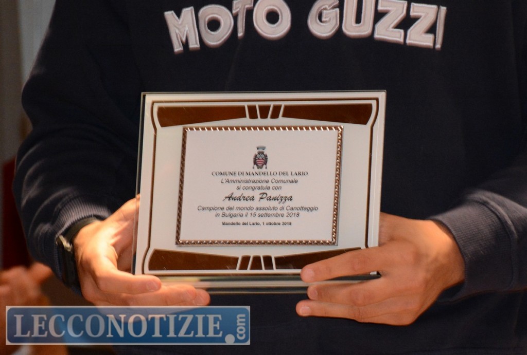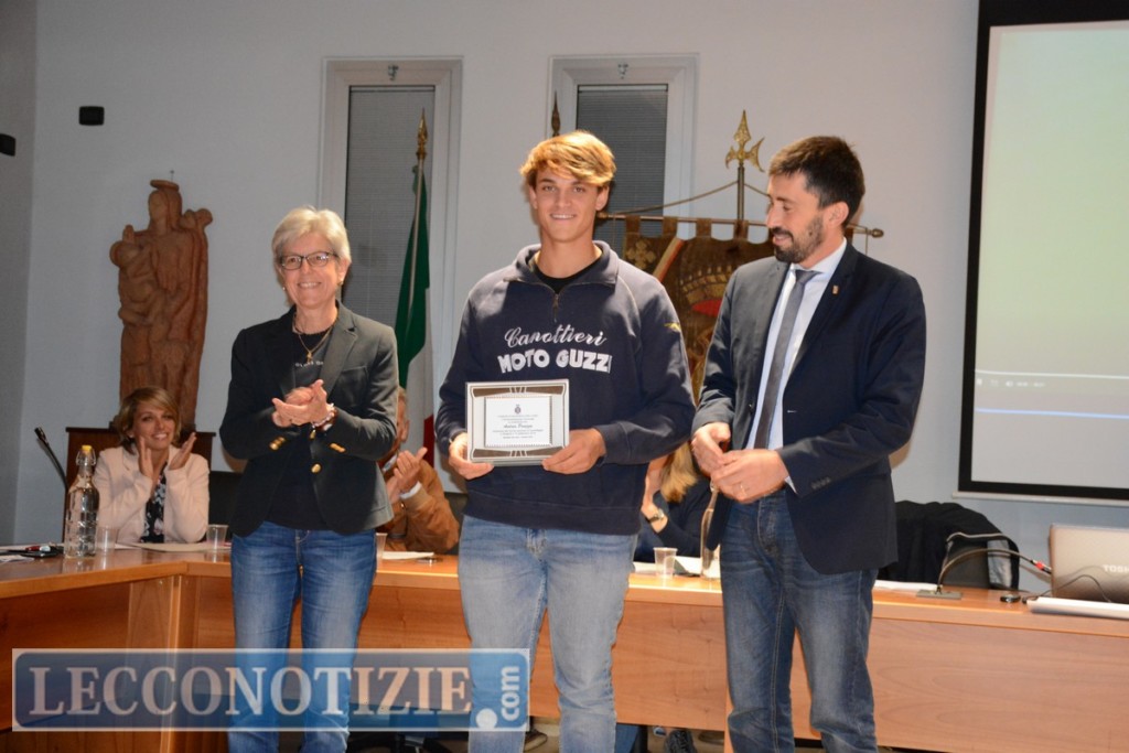 L’atleta, cresciuto nella Canottieri Moto Guzzi e ora nelle Fiamme Gialle, è stato accolto lunedì sera in consiglio comunale dove il sindaco Riccardo Fasoli e l’assessore allo Sport, Serenella Alippi, gli hanno consegnato una targa per onorare il suo incredibile traguardo.