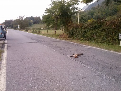 Una volpe travolta e uccisa sulla Provinciale a Suello
