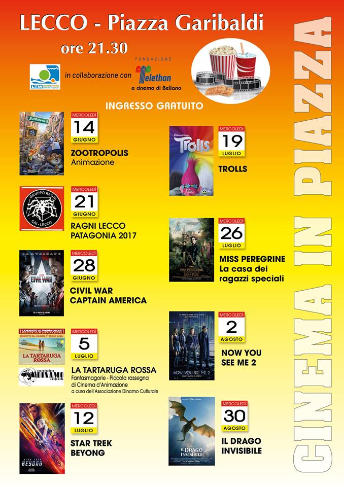 Una serata per le famiglie quella che apre la stagione delle proiezioni del mercoledì sera in piazza Garibaldi targata LTM, la Lecchese Turismo Manifestazioni, insieme a Telethon e al Cinema di Bellano.
