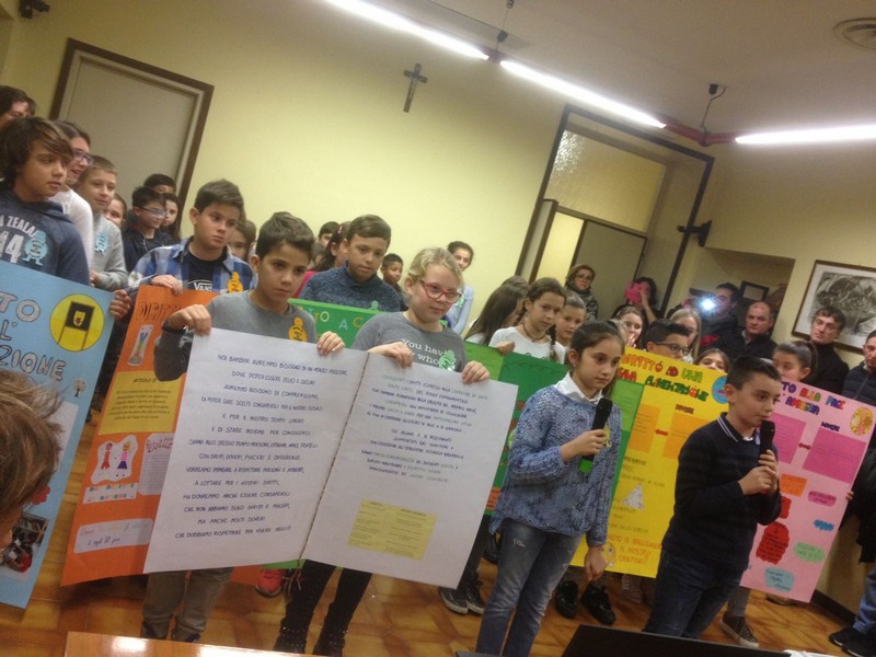 Un documento a cui sono giunti dopo un lavoro svolto con le loro insegnanti sui diritti dei bambini. A differenza degli anni scorsi in cui i bambini eleggevano il sindaco dei ragazzi, quest’anno si è voluto fare qualcosa di diverso: i piccoli studenti si sono divisi in gruppi e ognuno ha lavorato su un singolo diritto stilando, alla fine, una serie di promesse e obiettivi da raggiungere insieme.