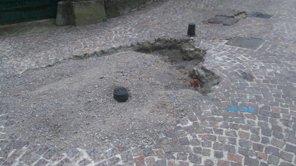 A rilevare il progressivo cedimento del manto stradale, costituito di porfido in quel tratto, diversi residenti che hanno provveduto ad allertare il Comune. Nel tardo pomeriggio di venerdì sul luogo sono intervenuti il Sindaco Sergio Brambilla insieme ai Volontari della Protezione Civile e ai Carabinieri. La grossa buca (oltre 1 metro le sue dimensioni) si sarebbe probabilmente creata a causa dell’acqua.