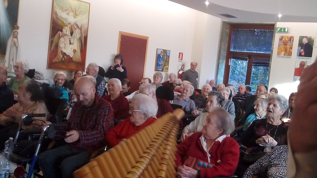 Qui, accompagnati dalle note dei flauti di pan, hanno eseguito alcune canzoni del loro vasto repertorio, allietando il pomeriggio festivo degli ospiti della struttura e di tutti i loro parenti e amici in visita, raccogliendo numerosi applausi e ringraziamenti per la loro esibizione.