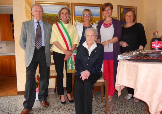 La signora Palmira, ancora in ottima forma, ha spento le 100 candeline, attorniata dai familiari, a cui si sono aggiunti il sindaco Donatella Crippa, l’assessore Patrizia Vassena ed Ernesto Dell’Oro, presidente dell’Associazione “Genitori e Amici degli handicappati”, struttura presso cui una delle figlie ha lavorato per molti anni.