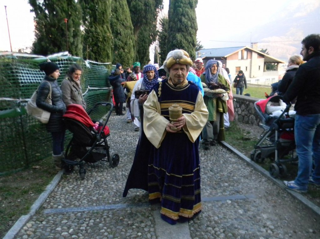 VALMADRERA – I re Magi a cavallo arrivano in città e una folla di valmadreresi li accompagna a rendere omaggio al bambin Gesù nel presepe vivente al santuario di San Martino.